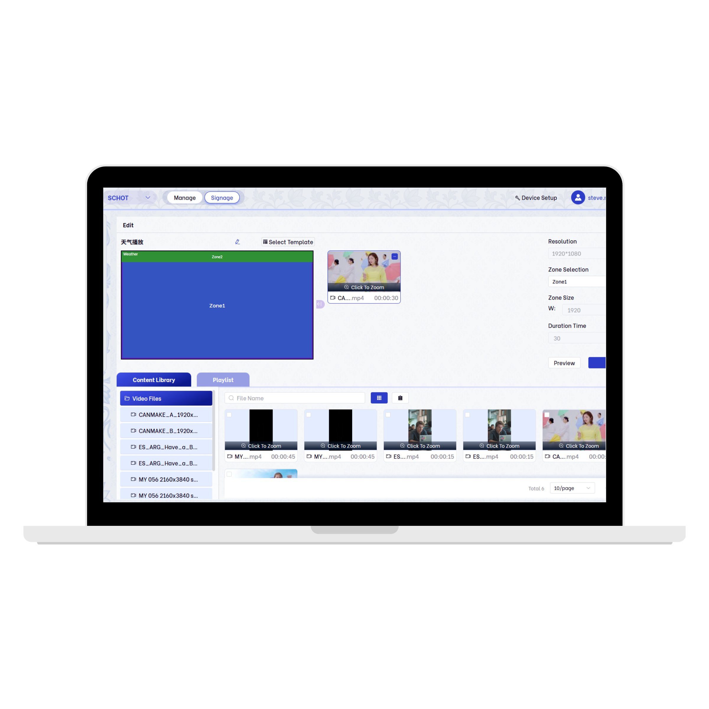 - Publish single or multiple schedules to required device groups with flexible settings for content playlists, dates, and times. Reusable device groups and content playlists reduce manual maintenance costs. Publish diverse content including IPTV recordings, videos, audio, images, RSS feeds, HTML5, etc., offering maximum flexibility and customized solutions for all application areas.